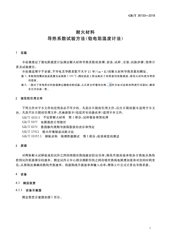 附件:GB/T 36133-2018《耐火材料 导热系数试验方法(铂电阻温度计法)》全文截图